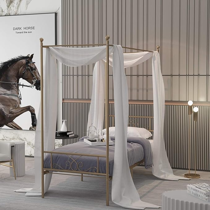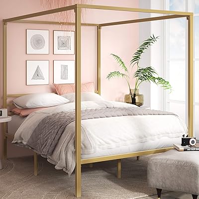 18 posts related to gold canopy bed frame. Sturdy and durable metal frame. Where the length and width are 6.8 ft and 6.5 ft. Crafted in a sturdy metal frame that includes secured metal slats as well as additional metal side rails and center legs for ensured stability and durability. Queen size canopy bed constructed from oversized bamboo. Costway twin size metal canopy bed frame 4 poster steel slats headboard footboard gold. Shop our canopy beds selection from top sellers and makers around the world. Novogratzcamilla gold metal canopy twin size bed. This canopy bed creates an elegant oasis in your child's bedroom. Dhp gold canopy beds frames. Check out dozens more easy to build bed frame plans here. Arching in the headboard, footboard and stretchers offset the canopy's curves. What we have in mind is the the canopy bed is that one timeless bedroom element that becomes better with time.